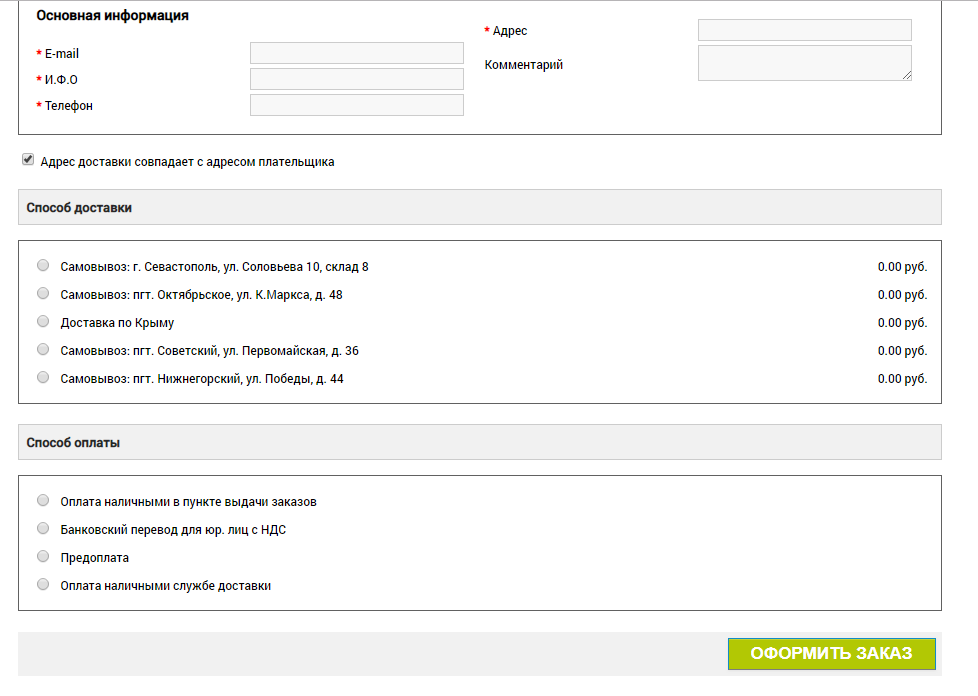 Для завершения оформления заказа заплните поля ,выберите сопособ доставки и нажмите на кнопку «Оформить заказ». Заказ будет передан нашему менеджеру, после чего он сам вам перезвонит и уточнит все детали заказа.